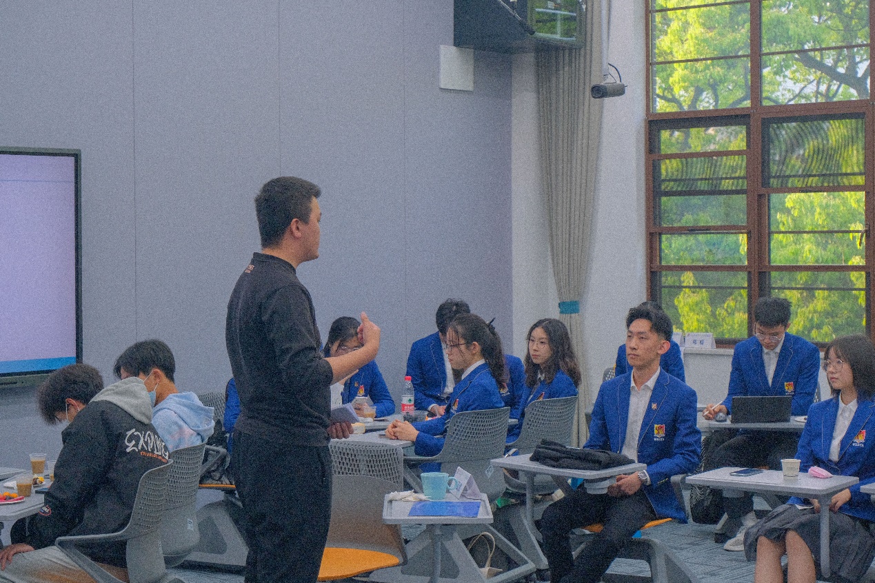 李泓波学长聚焦项目方向、创新技术、市场需求、核心团队、战略规划五个方面展开分享。他结合瑞幸咖啡、沙鼠科技等企业案例,为同学们提出了一些创新创业大赛活动设计的新思路。自身知识储备以及经验都十分丰富的李学长给同学们带来满满干货。他重点提到,同学们要主动寻求导师帮助,同时确定好3-5人的核心团队力量,并分配好角色。