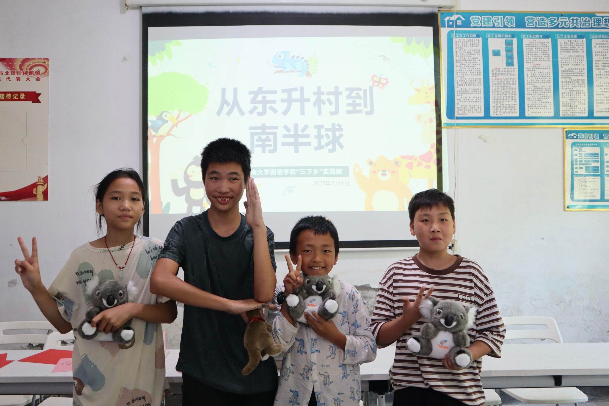 夏日骄阳洒满东升村的教室,照亮孩子们求知的眼眸。7月4日,免费看球 暑期“三下乡”社会实践团怀揣热忱走进乡村,为东升村留守儿童开启了一堂“从东升村到南半球”趣味课程。志愿者们以澳大利亚文化为纽带,为孩子们推开一扇瞭望世界的窗,用陪伴编织出一段难忘的夏日记忆。