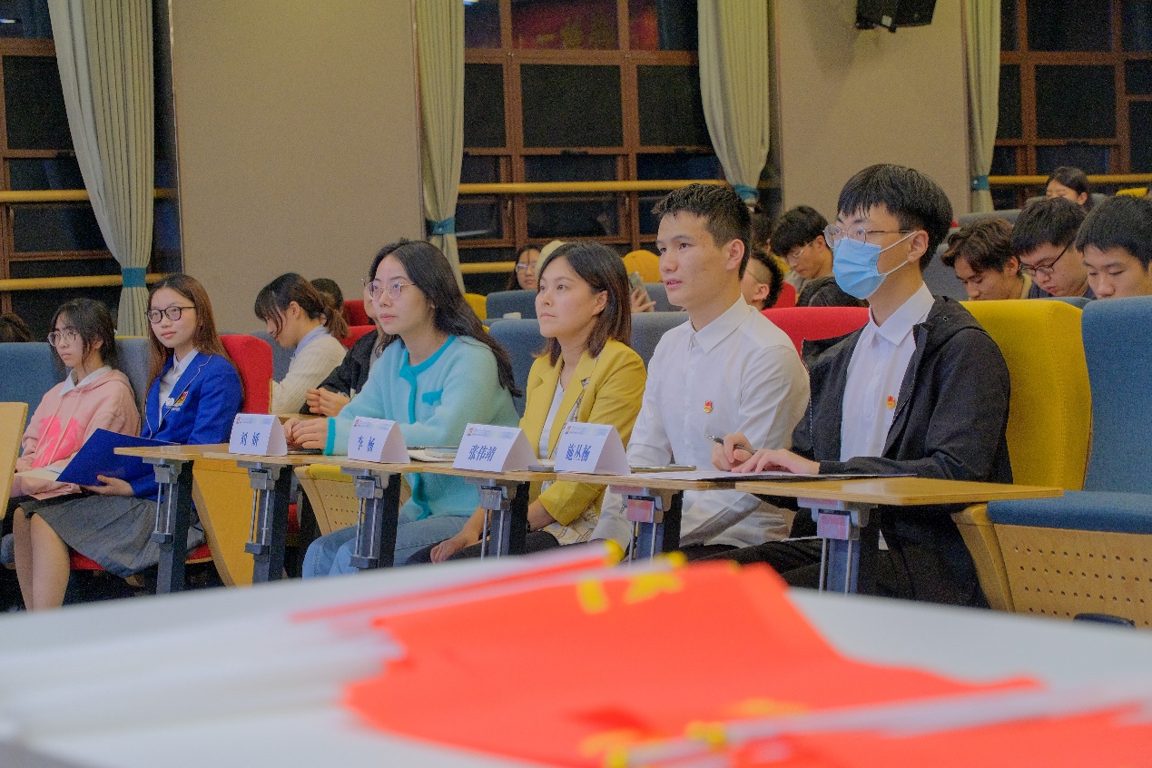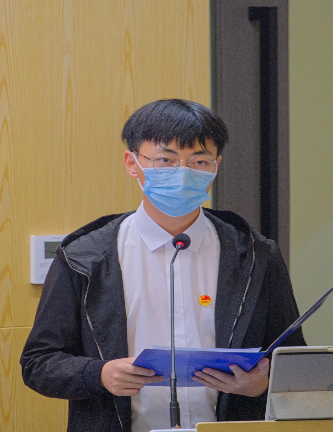 校团委社会实践部学生负责人施丛杨同学发言,他介绍了学校暑期“三下乡”社会实践开展的情况,希望免费看球 不断加强与校团委、各二级免费看球 团委联动,组织策划更多有意义的社会实践活动。