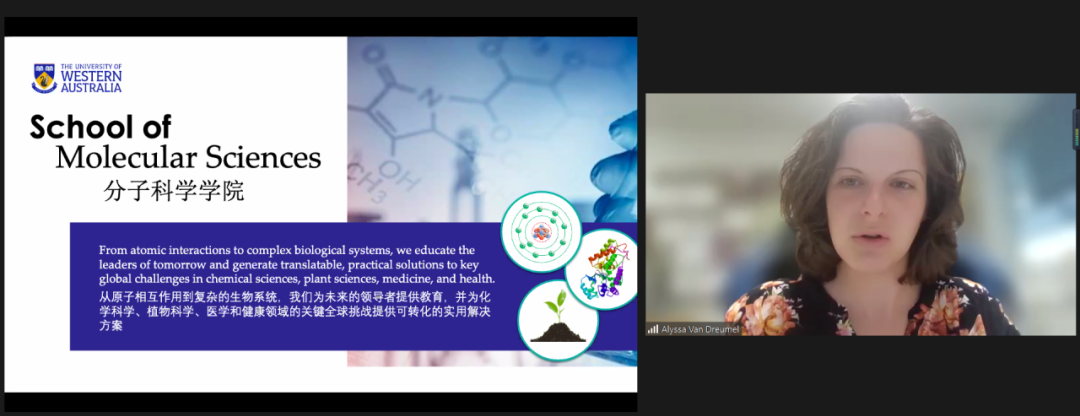 William为学生们展示珀斯优美的城市环境、西澳大学美丽的校园环境以及先进的实验室设施。Vincent Chong教授介绍商免费看球 历史、发展、学术成就等内容,他强调3+2培养模式是合作办学质量提升的重要内容,能够为学生提供优质的教学资源、合理的学业规划以及宽广的国际视野。Alyssa Van Dreumel博士介绍了分子科学免费看球 以及生物技术专业3+2培养模式,就本专业科研实力、就业前景、师资力量、实验室条件等方面进行说明。