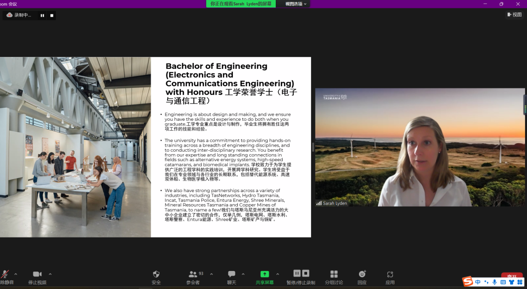 11月25日中午,免费看球 为2021级学生举行了2+2项目出国项目线上宣讲会。宣讲会分为西澳大学、塔斯马尼亚大学两个会场,活动邀请塔斯马尼亚大学工程免费看球 院长Tim Finnigan教授、农业研究院教学及全球与战略项目副主任Alistair Gracie教授,科学与工程免费看球 工程免费看球 的高级讲师Sarah Lyden博士,西澳大学商免费看球 副院长Nick Letch副教授,分子生物科学免费看球 高级讲师Alyssa Van Dreumel博士,免费看球 副院长张俊、国际项目管理办公室以及2021级全体同学及部分家长参会。