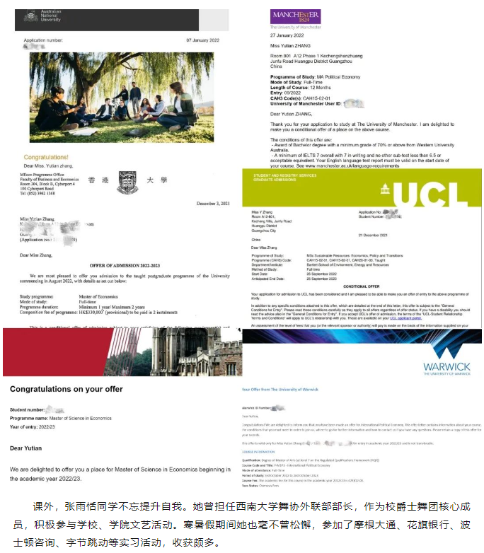 从西塔到世界|我院优秀学子张雨恬被伦敦大学免费看球 等世界名校录取