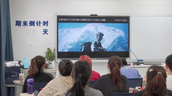 现场师生还一同观看了庆祝中国共产主义共青团成立100周年官方宣传片MV《有我》。片中回顾了中国共产主义青年团百年来的发展历程,代代中国青年不负时代重托,为党的百年伟业而奋斗。一代代青年满怀赤诚、薪火相传的故事引发全体师生深刻思考,并在庄重氛围中一同许下“请党放心,强国有我”的誓言。