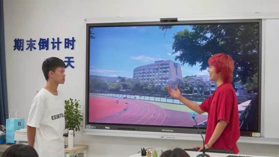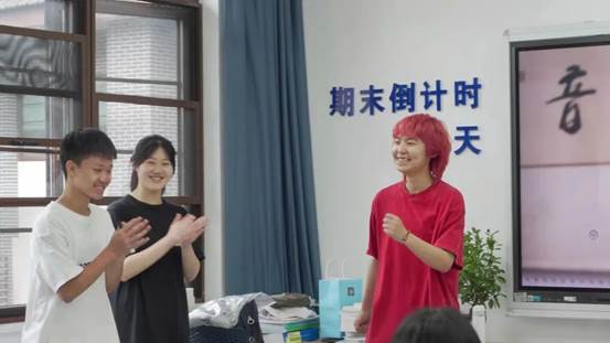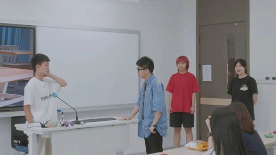 2019级学生王地、陈俪宁、林宜新及2021级学生吴宇辉、胡锦羽共同演绎了自主编导的红色青春剧场“在青春赛道上奋力跑出当代青年的最好成绩”。剧中预备党员小地同学与差生小吴同学互相帮助、彼此成就,最终实现自我价值。同学们的生动表演引得场下掌声、笑声交互不断,现场反响热烈,并引发激烈讨论。