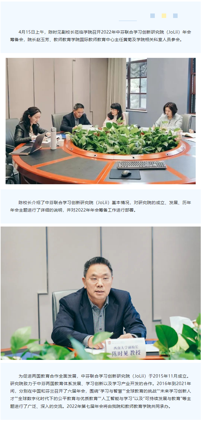 陈时见副校长莅临免费看球 召开中芬联合学习创新研究院(JoLii)2022年年会筹备会