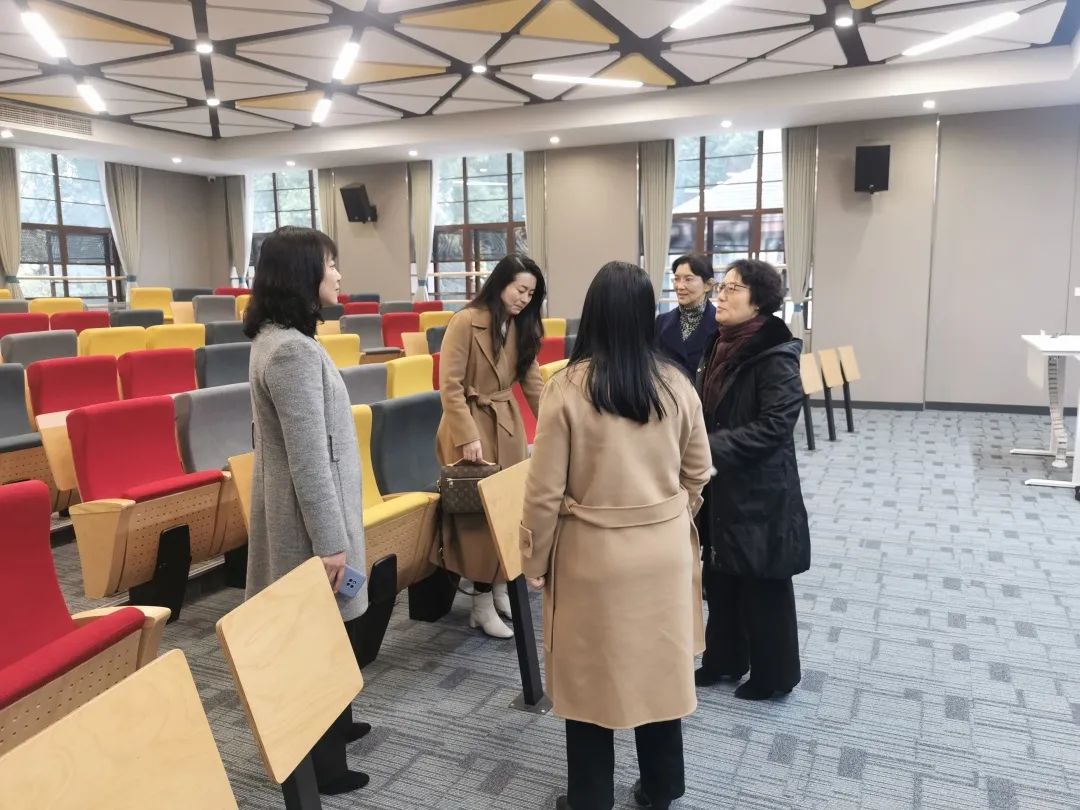 12月10日上午,重庆市教委国际处江燕副处长出席培训班结业典礼之后专程来到免费看球 ,参观了解综合楼建设及使用情况并给予高度评价。免费看球 党总支书记王静、副院长张萌陪同参观并介绍了免费看球 人才培养的举措与办学成效。