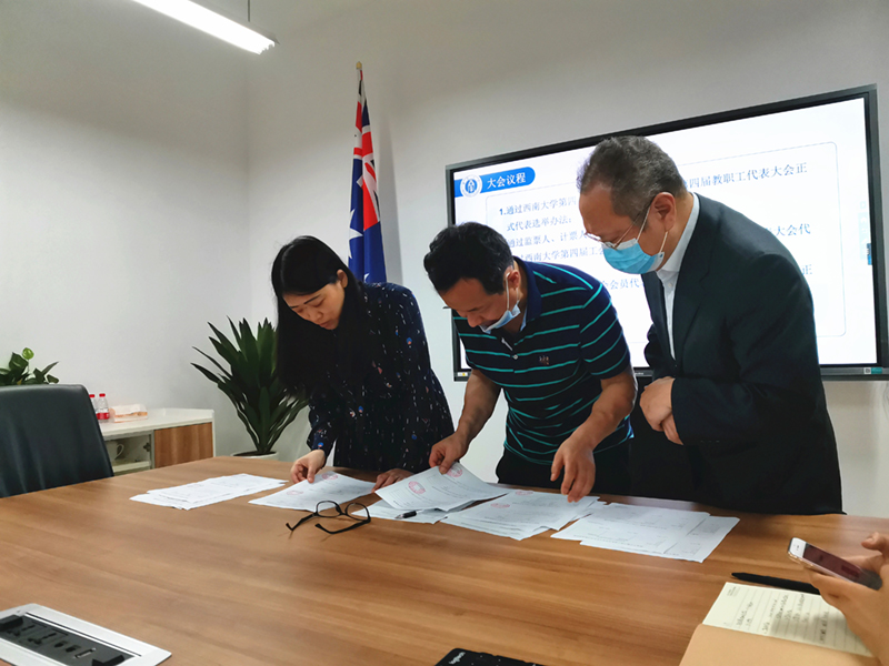 根据学校的统一部署和相关文件精神,按照西南大学两代会代表的选举办法规定,经过前期酝酿和候选人提名,大会采用无记名投票方式选举产生了第四届工代会、教代会代表各一名。赵玉芳同志当选为西南大学第四届教职工代表大会代表,张萌同志当选为西南大学第四届工会会员代表大会代表。