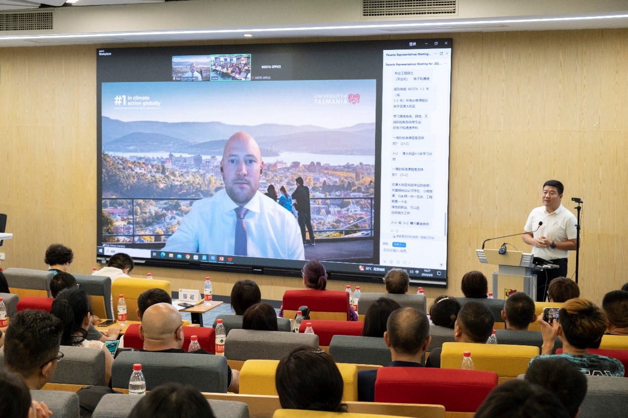 塔斯马尼亚大学副校长Rob Wilson先生在线向新生家长表示热烈的欢迎,他介绍了合作专业的入读条件和培养路径、奖学金政策、住宿条件、就业前景等基本情况,对比不同培养模式的课程优势,并以西塔学子在塔大的成长故事鼓激励大家做好职业生涯规划,选择最适合个人的发展路径。