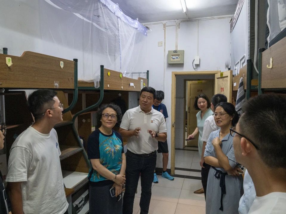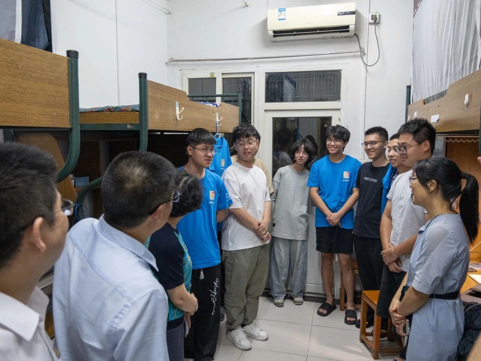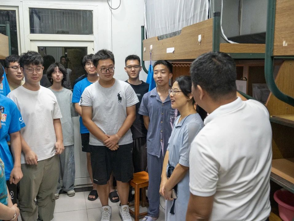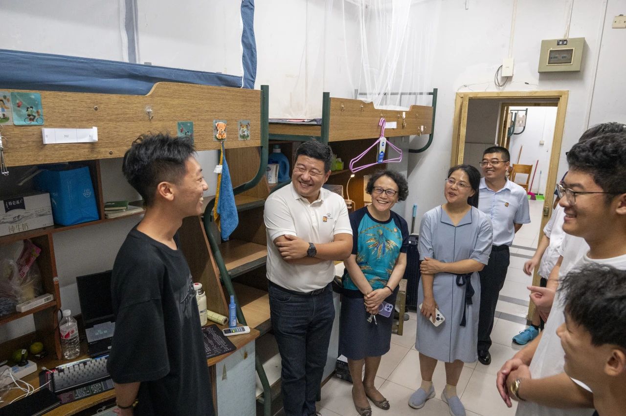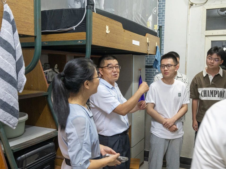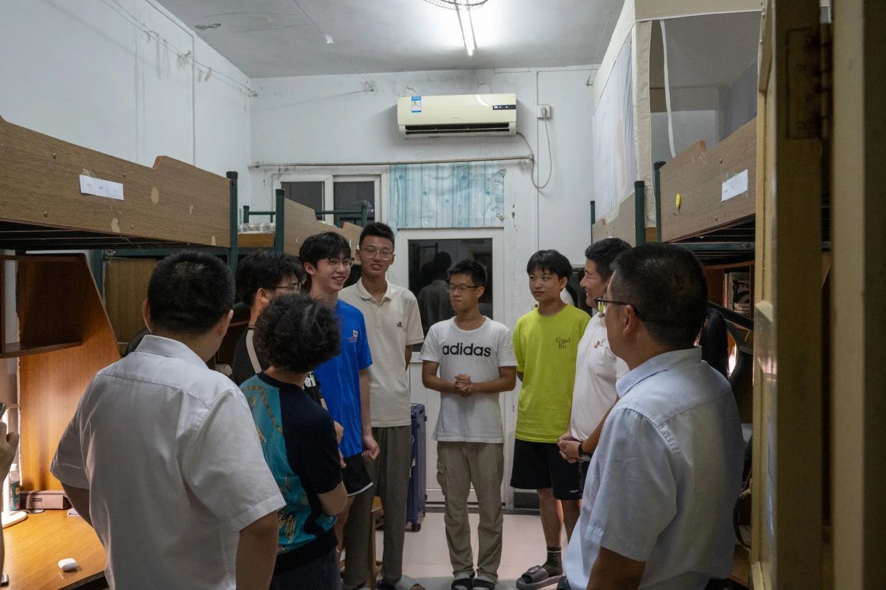 为进一步了解2024级新生入学后的学习生活情况,帮助学生快速适应新环境,传递免费看球 的关怀与温暖,9月8日晚,免费看球 全体领导和2024级辅导员深入走访新生宿舍,与同学们进行了亲切的交流与慰问,用实际行动传递关怀与期望。