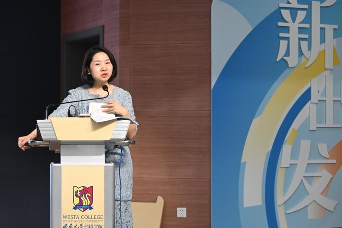 在英语学习专题讲座上,英语教师代表杨思楠向同学们讲解了为中外合作办学学生特别设计的英语教学体系,以及开展的精彩纷呈的英语竞赛及英语角等活动,旨在帮助新生尽早突破语言关卡,增强学习信心。