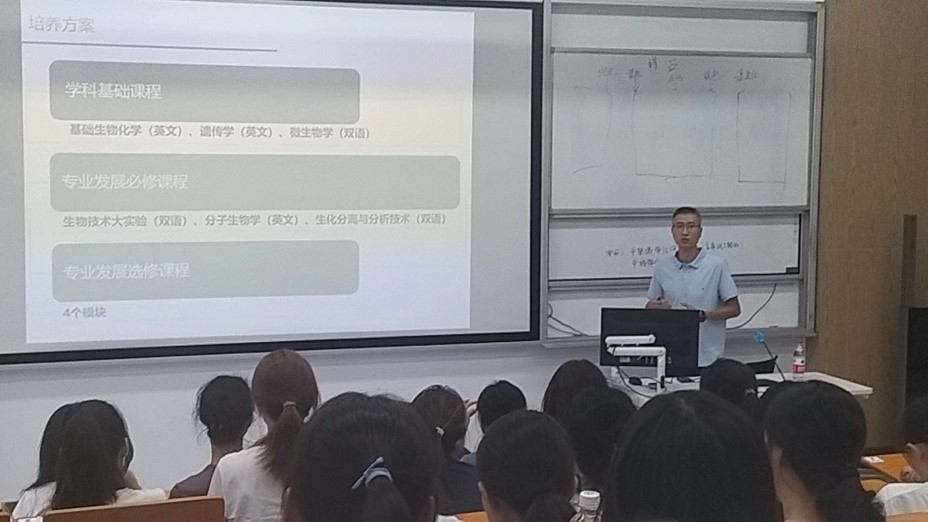来自四个专业的优秀教师代表为新生们进行了详细的专业解读。生物技术专业负责人兼2024级班主任周游老师介绍了西南大学生物技术专业雄厚的科研实力,向同学们描绘了生物技术领域的未来发展趋势,指出应当在夯实理论基础的同时具有跨学科思维。食品质量与安全专业负责人兼班主任戴宏杰老师围绕专业特色、专业现状、课程体系以及发展前景等方面做了详细介绍,希望同学们尽早确立个人发展目标。经济学专业刘培森老师结合自身求学经历,深入浅出地向同学们阐述了经济学的学科背景、研究方向以及重要的社会影响,鼓励同学们积极开展学术科研实践活动。电子信息工程专业负责人王欣老师介绍了电子信息工程学科研究的重点、发展前景、就业方向,强调参与学科竞赛与科研的重要性。同学们积极提问,现场氛围浓厚。