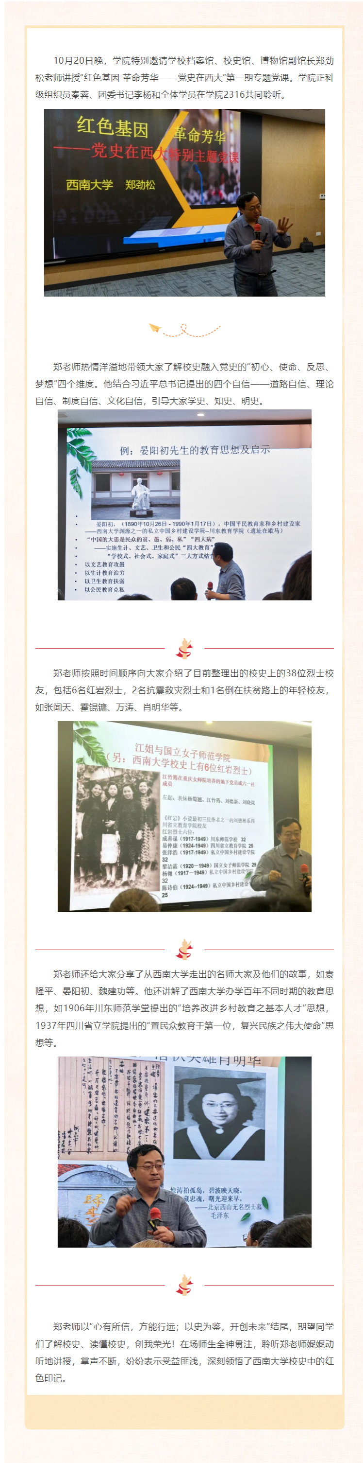 红色基因 革命芳华 | 学校郑劲松副馆长为西塔学子讲授专题党课