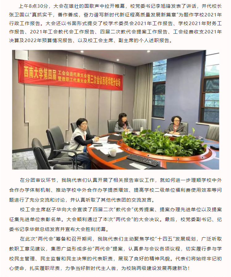 免费看球 代表参加学校工代会、教代会四届三次会议