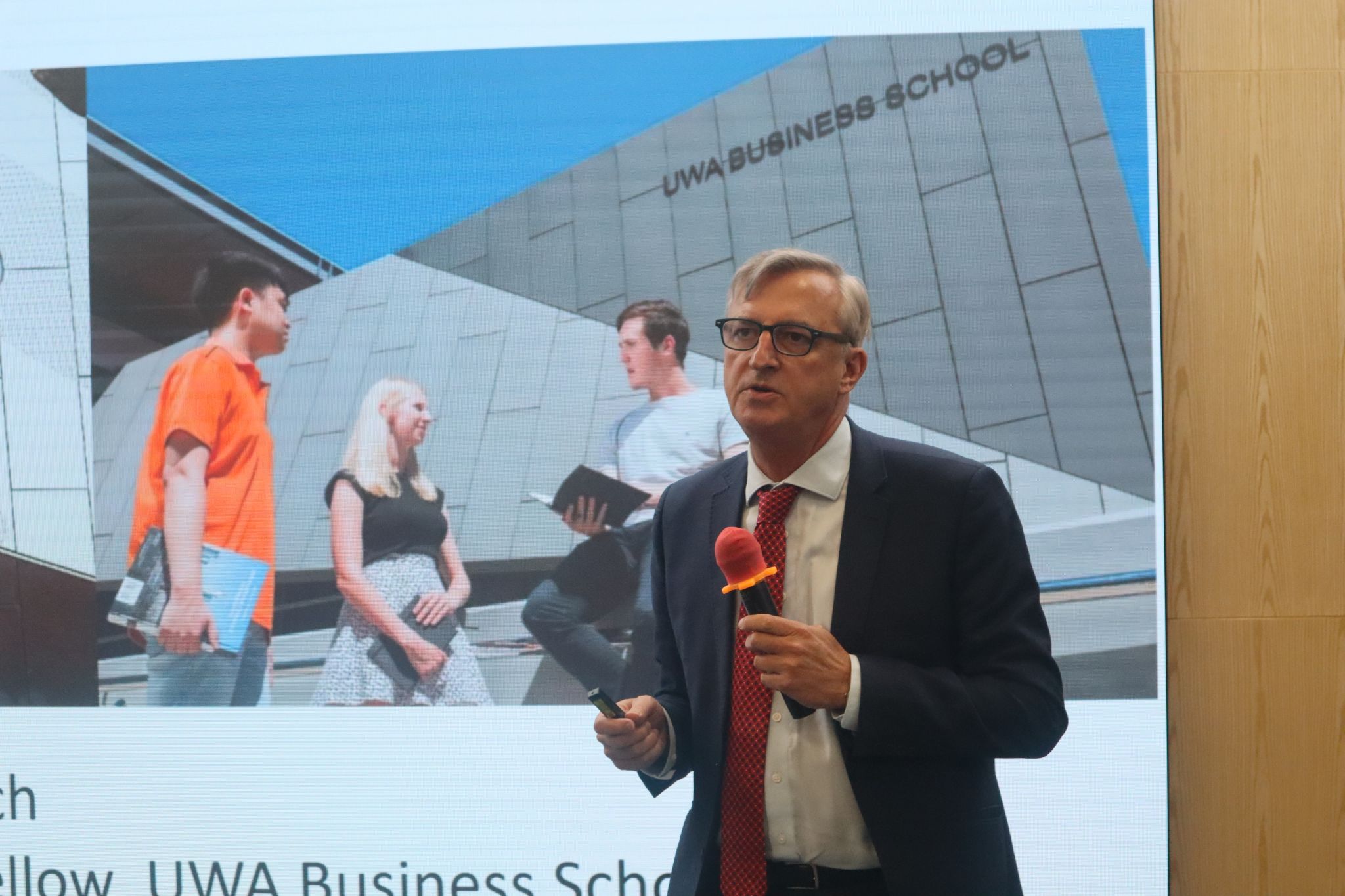 会后,代表团与2024级经济学、生物技术专业100余名同学共同交流,详细介绍了西澳大学的学术资源、毕业生就业与薪资优势、研究生深造机会,并通过校友案例分享,为大一学子提供发展路径参考。