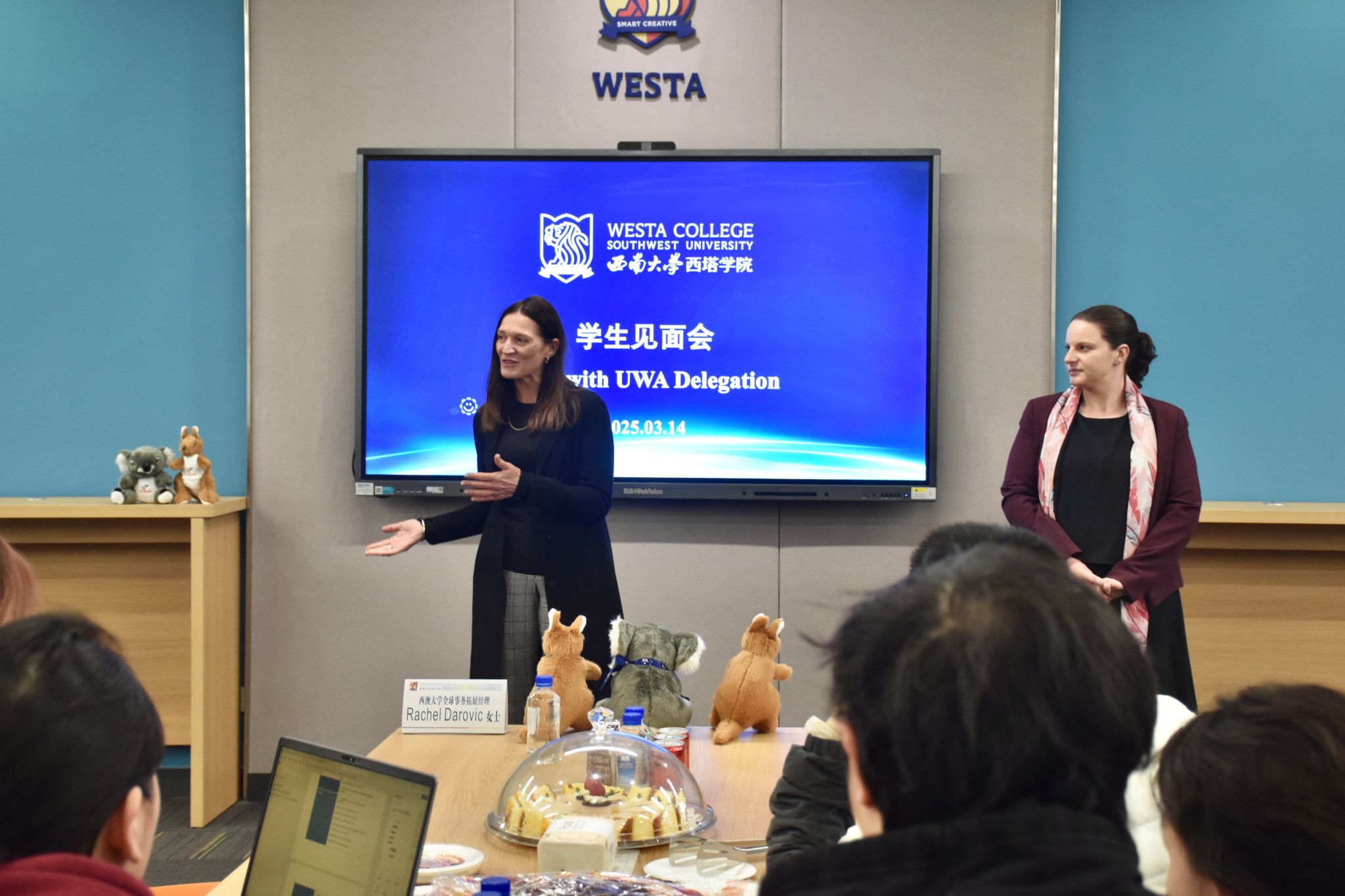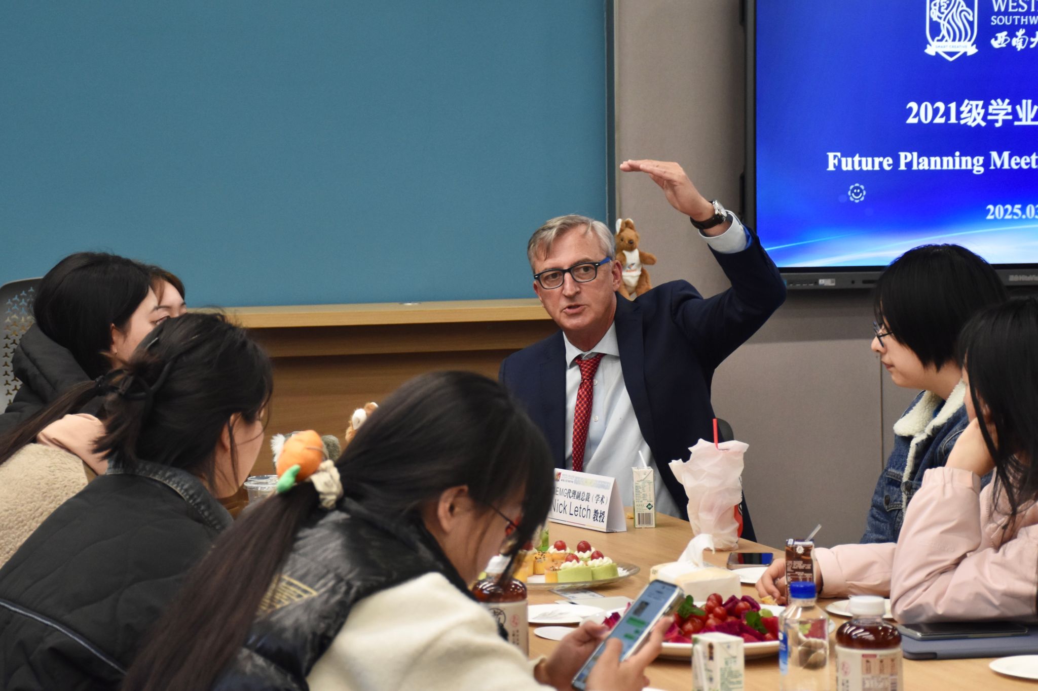 访问期间,代表团分别与“2+2”“3+2”同学开展行前见面会,与部分毕业年级同学举行升学就业座谈会。行前见面会上,Nick Letch教授、Rachel Darovic女士与Alyssa Van Dreumel博士与西塔学子们分组交流,毫无保留地分享他们在经济学和生物技术相关领域的学术和从业经验,并热烈欢迎各位同学前往西澳大学学习。