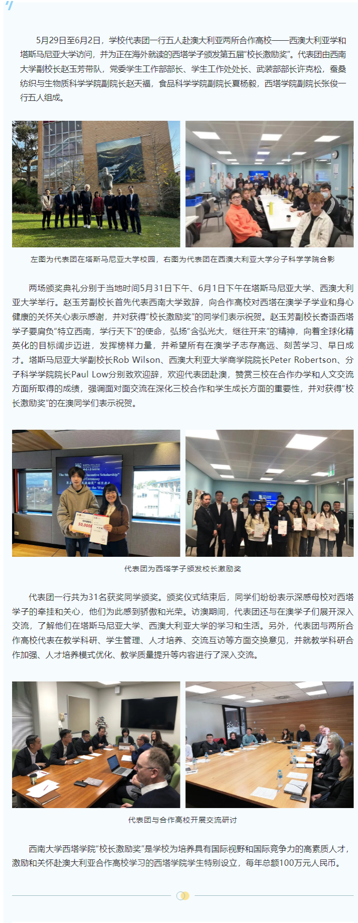 学校代表团赴澳大利亚颁发免费看球 第五届校长激励奖