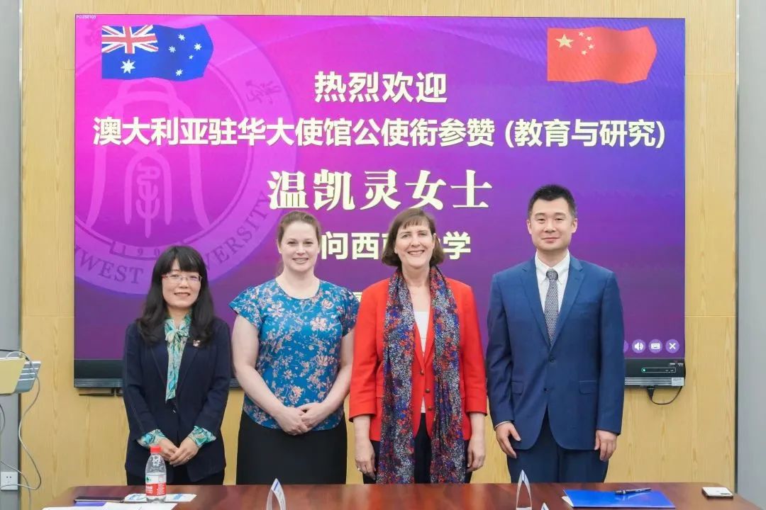 4月27日,澳大利亚驻华大使馆公使衔参赞(教育与研究)温凯灵(Karen Welsh),驻华大使馆一等秘书林玥晴(Rachel Lynch),教育与研究处高级主管雷小锋一行访问西南大学,学校党委副书记潘洵会见客人。学校国际合作与交流处处长罗雷、副处长胡琳,免费看球 院长赵玉芳、党委副书记滕超、副院长张俊参与座谈并陪同参观。