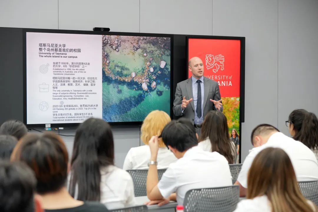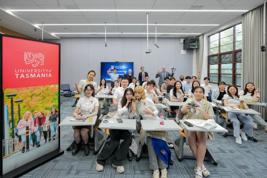 随后,塔斯马尼亚大学副校长Rob Wilson一行还与在校的电子信息工程、食品质量与安全专业的部分同学见面交流,为同学们详细介绍了塔大的办学历史、教学科研、师资力量、学生服务、城市环境等情况,并现场解答同学们有关在塔大学习生活等方面的疑问,热切欢迎同学们前往塔大学习。本次访问取得了圆满成功。