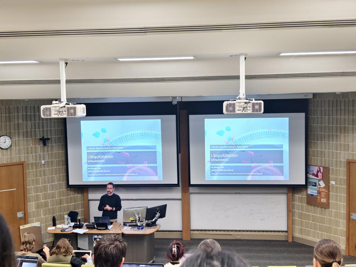 在Cellular Biochemistry课程中,Structure&Reactivity、Properties&Energetics的知识模块如同一扇扇开启的大门,引领同学们深入探索分子世界的核心奥秘。Dr Georg将泛素化修饰的精密调控娓娓道来,层层递进的讲解让复杂的分子调控机制如画卷般铺展,清晰展现出泛素化修饰在生命活动中的核心调控价值。这不仅让同学们对分子层面的生命运作规律有了更立体的认知,更在心中播下了对生物分子机制探索的好奇种子。