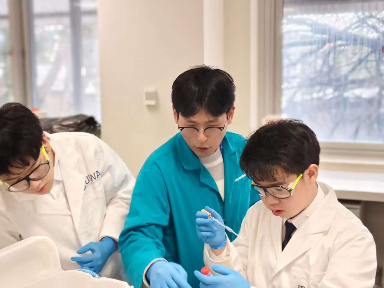 进入实验室,Joseph Oh与Mansi Manishkumar Parekh指导同学们完成了鸡肝组织中DNA的提取。从样本处理时的细致操作,到冷却、离心、沉淀等步骤,在这里,我们既真切体会到实验操作的每一步严谨规范,又因亲手触碰到生命的基础物质而心生奇妙——透过实验器材的透镜,仿佛真的与微观世界里跳动的“生命密码”打了个鲜活的照面。
