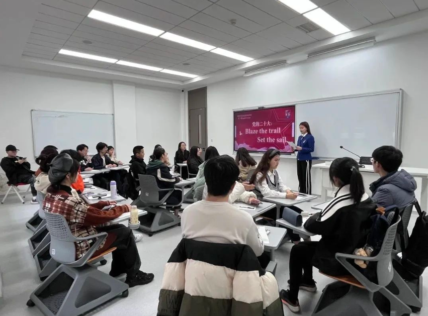 为在免费看球 营造浓厚的英语学习氛围,引导西塔学子深入学习党的二十大精神,激发西塔学子英语学习热情,英语演讲俱乐部于上周五在免费看球 D2115举办了“党的二十大:Blaze the Trail, Set the Sail”主题英语角活动。英语演讲俱乐部指导老师刘娇、国际项目办主任陈飞、实习辅导员邓雨蒙出席活动,40名英语爱好者参加活动。