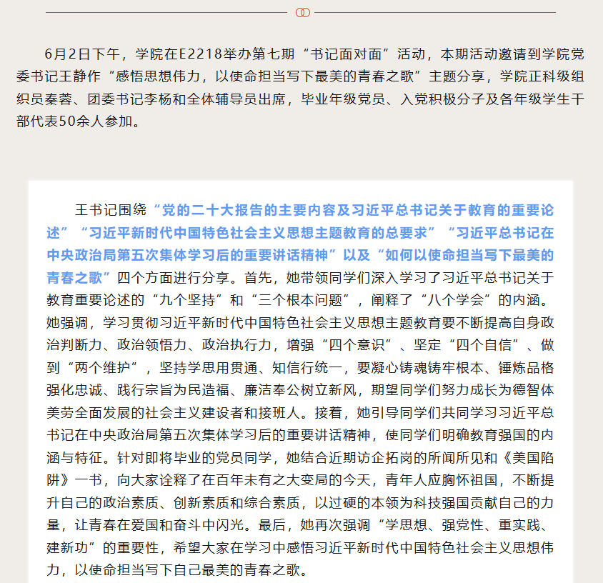 【书记面对面】第7期:感悟思想伟力,以使命担当写下最美的青春之歌