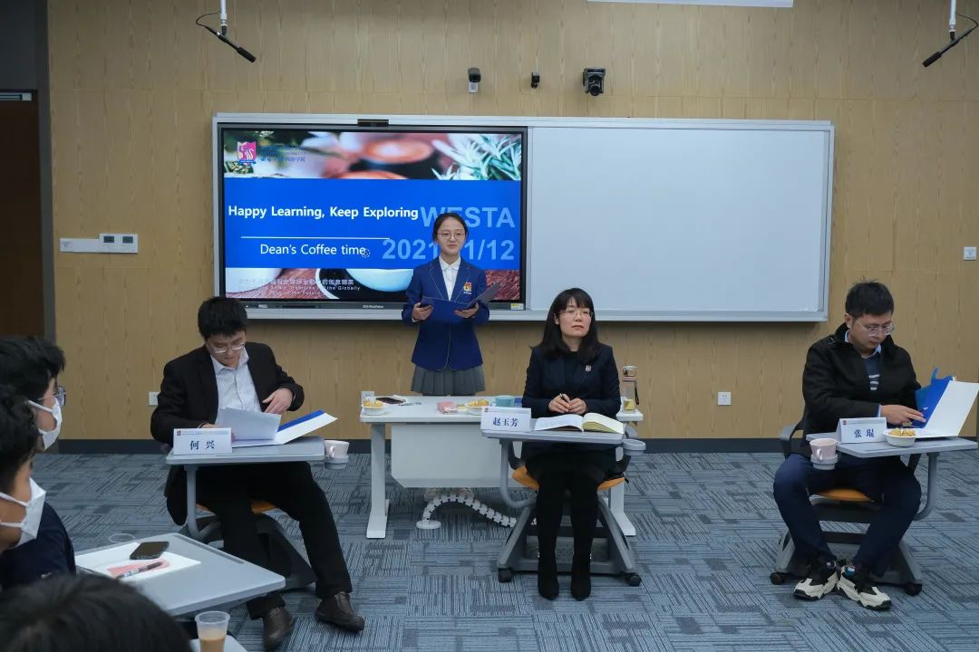 为持续加强免费看球 学风建设,拓展与提升学术科研视野与能力,11月12日下午,免费看球 首次于智慧教室举办了题为“Happy Learning, Keep Exploring”的院长咖啡时间活动。免费看球 院长赵玉芳、党总支副书记张琨、副院长何兴及全体学工办老师出席活动。本次活动共49名2021级西塔学生代表参加。