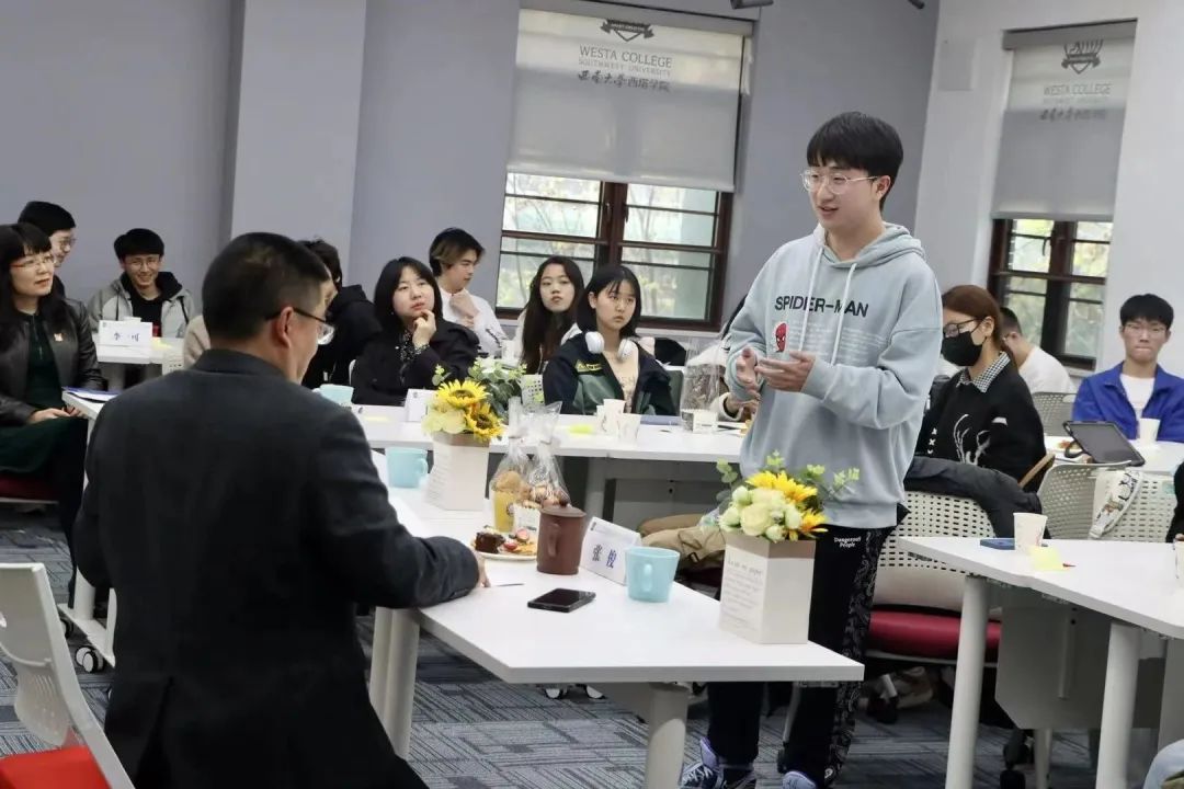 3月17日下午,免费看球 2023年首场院长咖啡时间活动如约而至。本次活动特别邀请到免费看球 副院长张俊作“Learn the World Through Language”主题分享,40余名西塔学子参加了本次活动。赵玉芳院长出席并总结讲话。参加本次活动的还有相关科室工作人员。