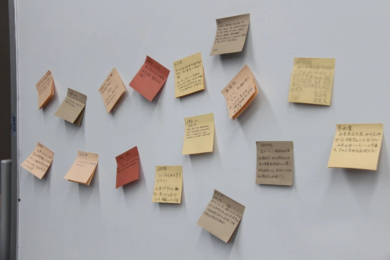 随后的自由讨论环节,现场氛围热烈。同学们将关于学业规划、澳洲文化生活的思考与疑问写满纸条。两位院长与周游老师随机抽取问题,耐心且风趣地回答了同学们有关双学位的选择、研究方向的确定以及澳洲历史、多元文化、生活习俗等问题。